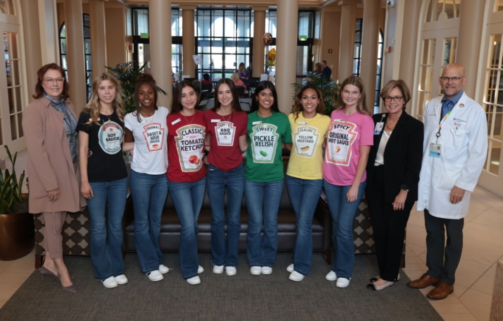 Today, the Tournament of Roses’ 136th Rose Court celebrated Halloween at Huntington Health. The court “trick or treated” in condiment themed costumes to visit Huntington’s pediatric and NICU patients and their families.