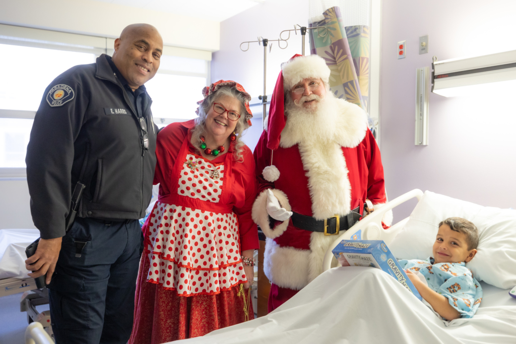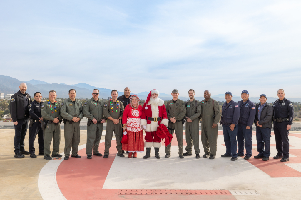 On December 11, 2024, Huntington Health welcomed the Pasadena Police Air Operations Section and the Foothill Air Support Team (FAST), for Operation Polar Wind – a very special visit to Huntington’s pediatric and NICU patients. Pasadena Police Chief Eugene Harris escorted Santa Claus to Huntington Hospital via his sleigh (helicopter), bearing gifts for the hospital to share with pediatric patients all year long.