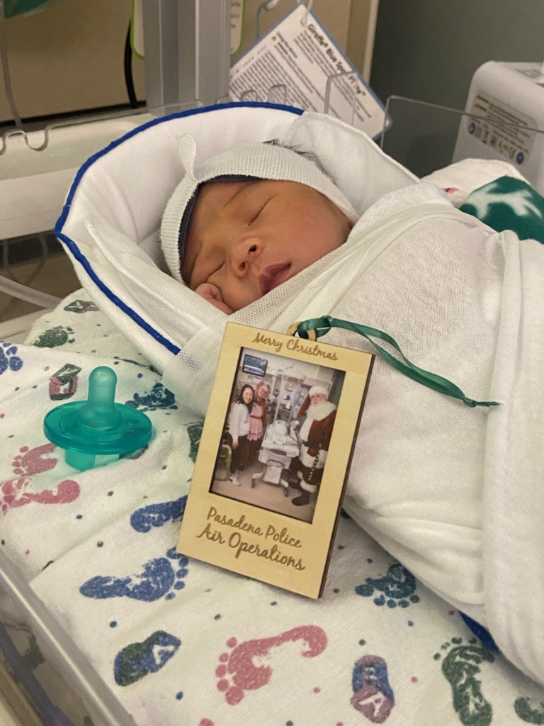 The 19th annual toy drive was funded through generous contributions from the Pasadena Police Department (PPD) employees and officer associations participating in the FAST program throughout the San Gabriel Valley. Every year, these community heroes donate from their own pockets to support Huntington’s pediatric and NICU departments. Also, Huntington NICU families received a special ‘Baby’s 1st Christmas’ photo ornament from PPD.